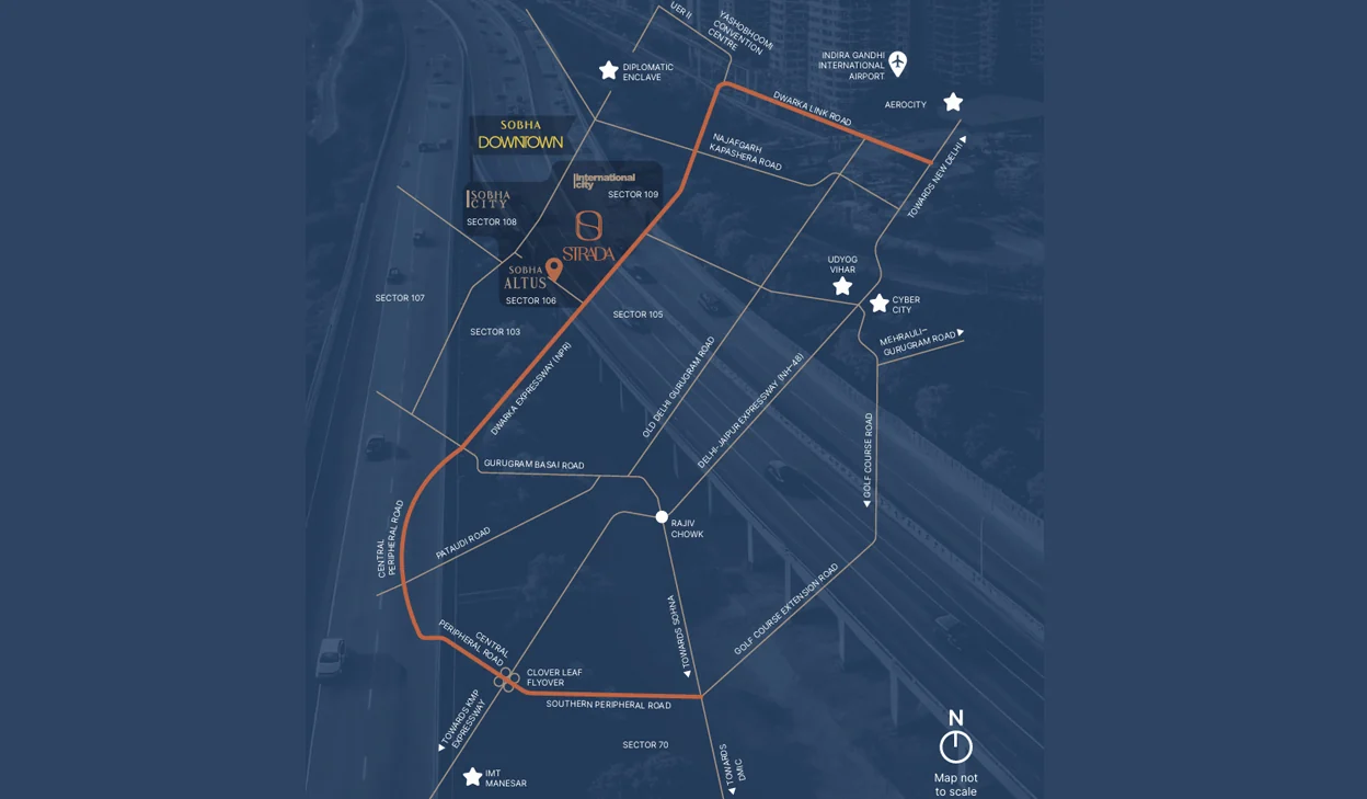 SOBHA Strada is a next-generation development featuring 251 one-bed serviced residences with a balcony and custom-made retail avenues, managed by SOBHA. With unit sizes ranging from 257 to 1026.37 sq. ft., the project is crafted to deliver a perfect mix of modern lifestyle, seamless connectivity, and strong investment value. From strong glass and aluminum walls that protect from heat, noise, and UV rays to smart layouts and luxury features, every part is designed for people who appreciate quality. The location provides excellent access to major landmarks such as Cyber City, MG Road, Udyog Vihar, IGI Airport, and Delhi, ensuring superior visibility and smooth connectivity. All essential amenities—such as lap/kids' pool, alfresco dining, parking, fitness area and 3 lift readily available, enhancing convenience and overall value. Designed for the future, Sobha Strada sets a new benchmark for contemporary business and urban living.
